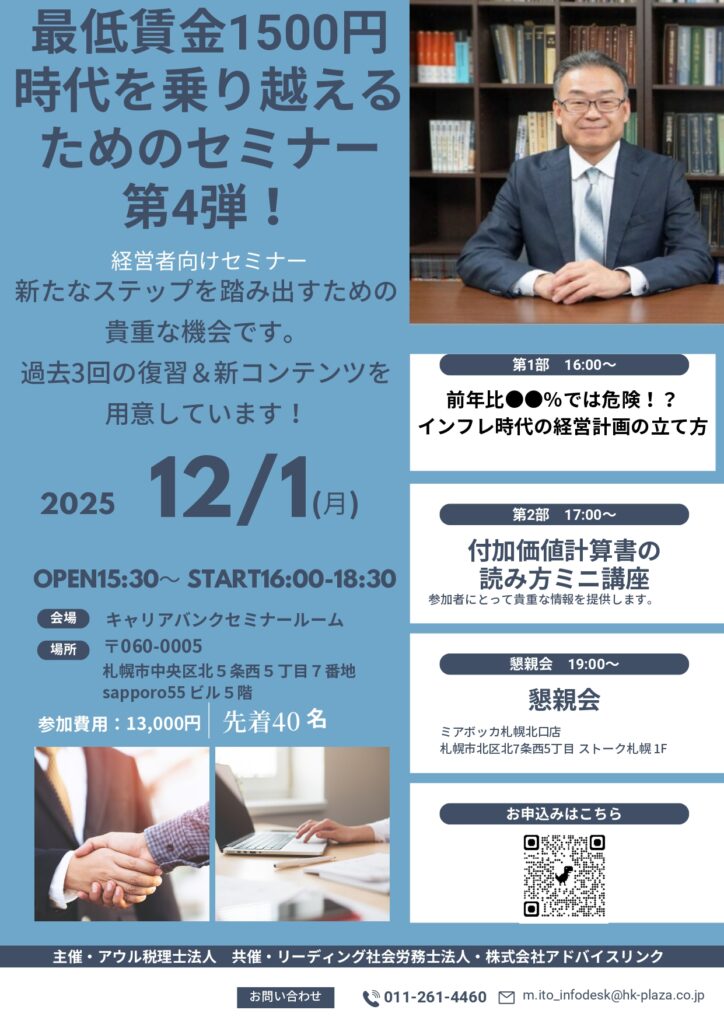 - 【2025/12/1 開催】 最低賃金1500円時代を生き抜くためのセミナー第4弾! - 2025年10月18日
